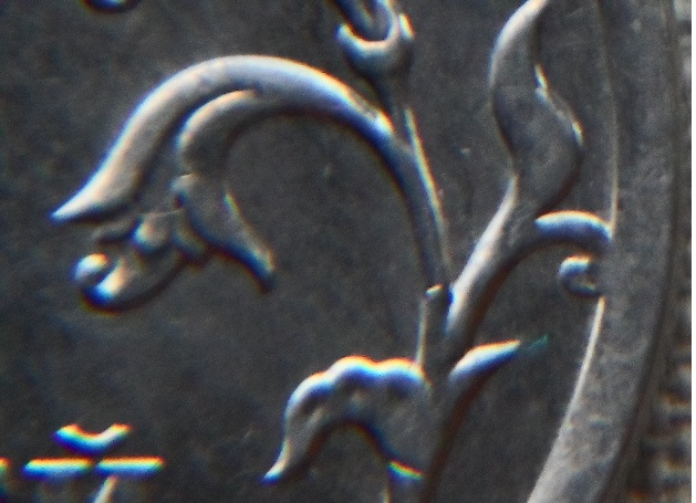 угол может не замят или замят ладно у 5 32 если внимательно посмотреть даже по фоткам на этом сайте у монет 5 руб 2014 года расстояние у верхнего листика до канта 5.32 будет самое короткое правда у моей монеты поверхность 5 сильно выпуклое ниже фото 2х монет 2014 года
