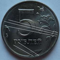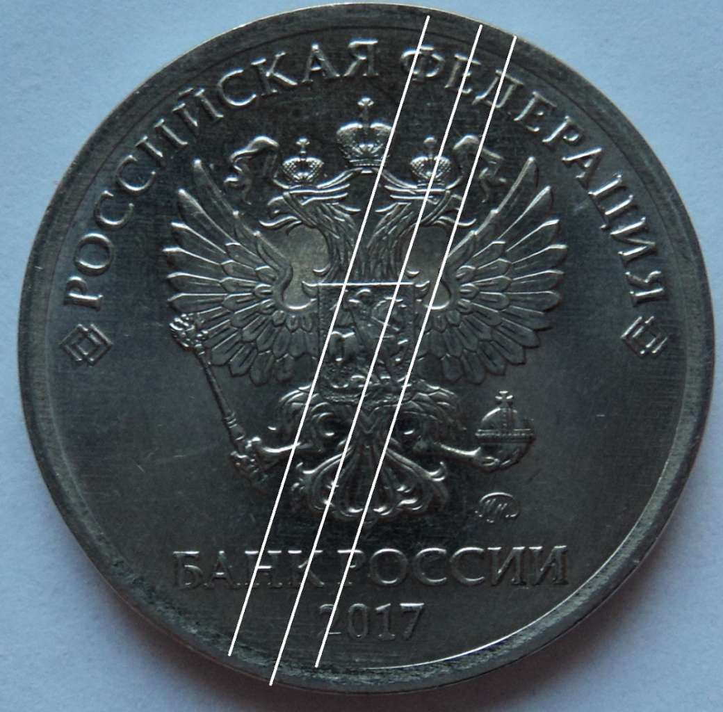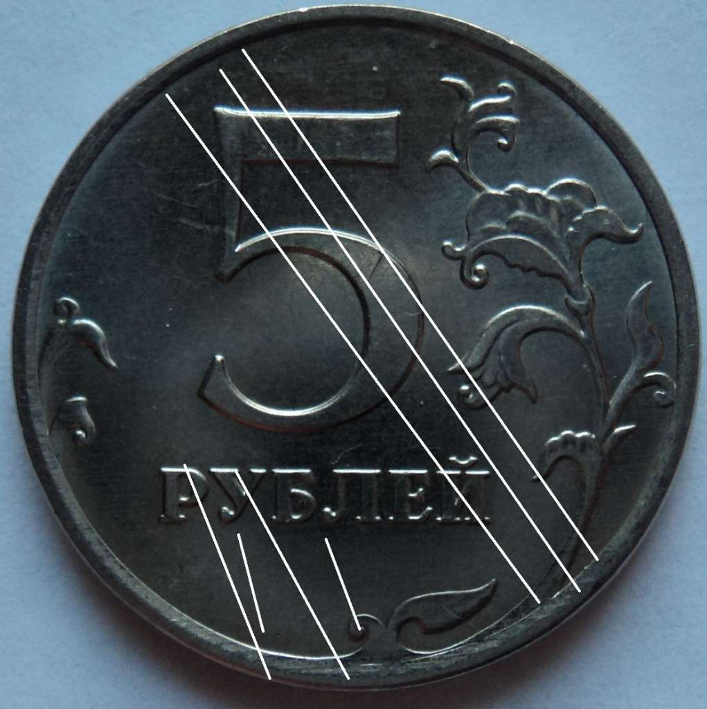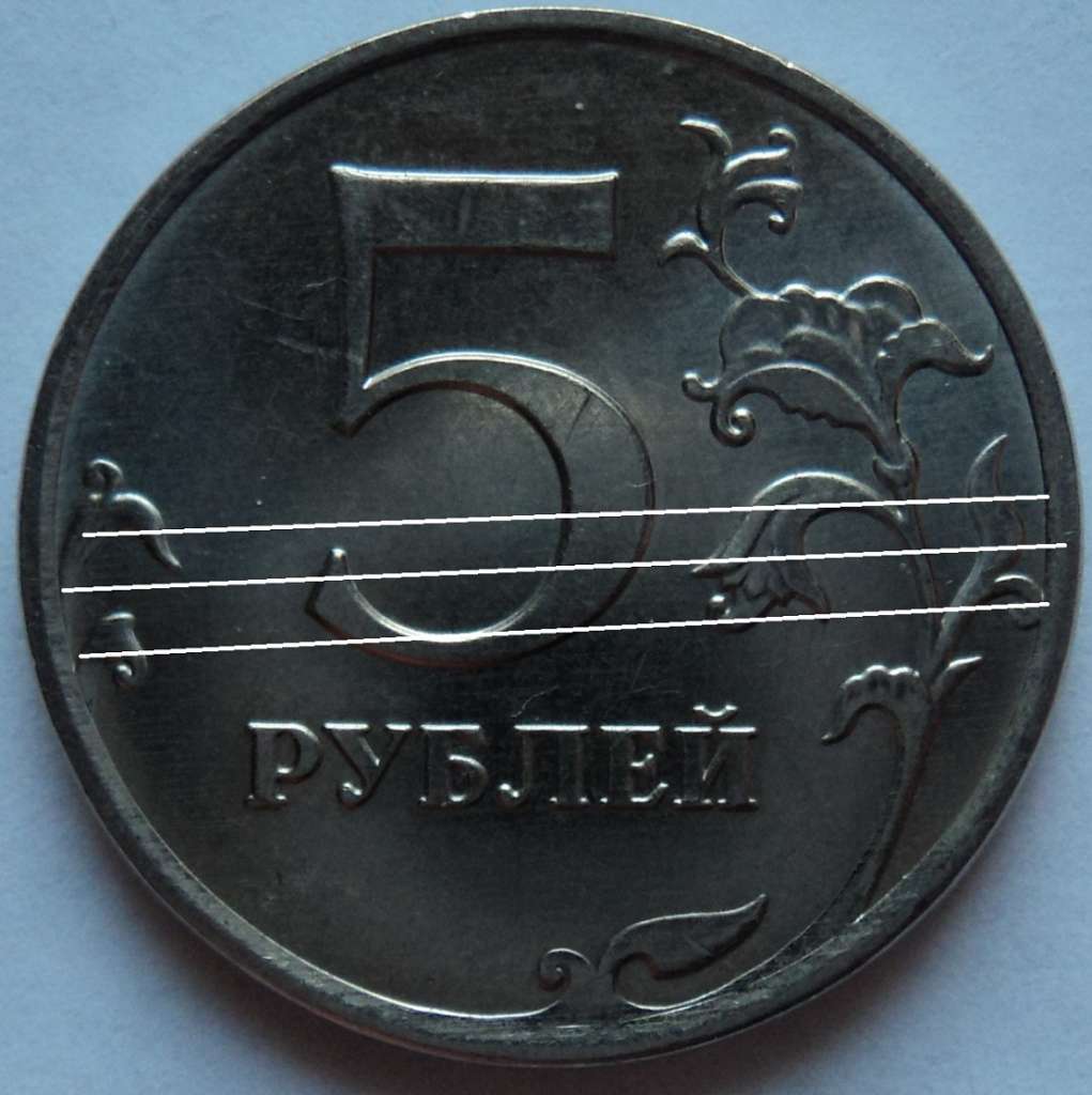 5 рублей 2017 г.М.М.Д. завиток примыкает к канту . шлифовки