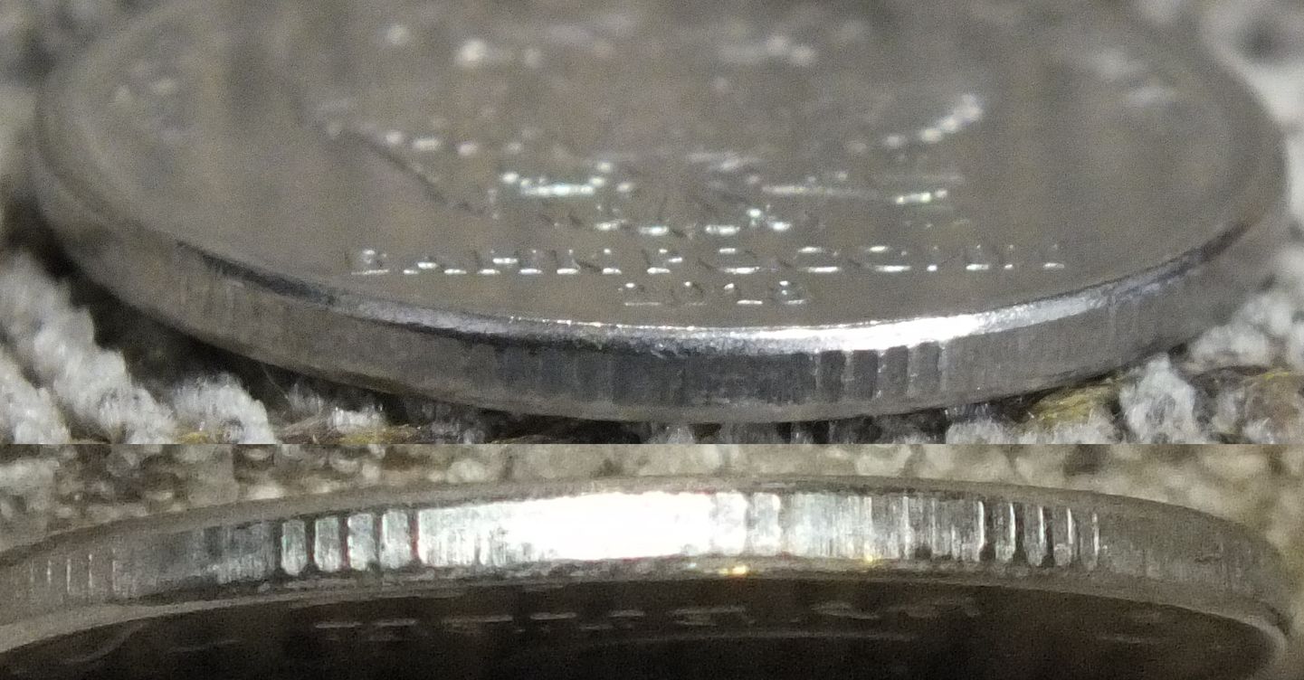 Доброго времени,раньше не обращал внимание,но попалась 5р 2018 с узкими рифами на гурте,это частое явление или нет?