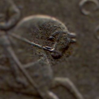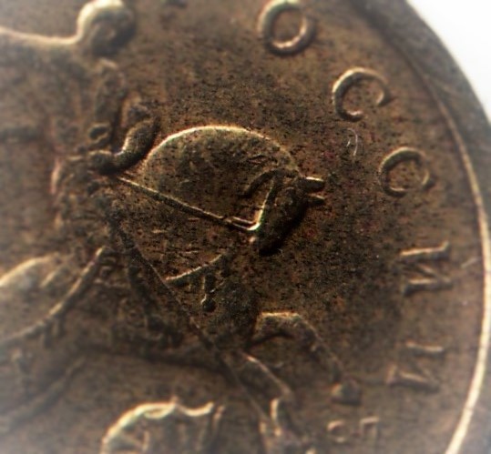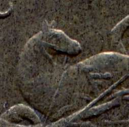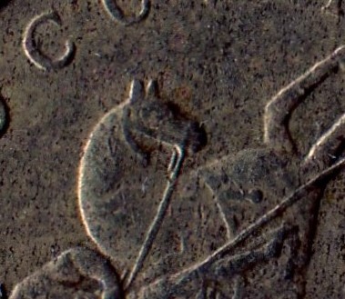 Между мордой и шеей коня 3 повода . 3 повод доходит до упряжи на морде . Может ошибаюсь . Левая монета . Последние 4 изображения монета помыта .