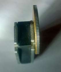 Промерьте любой латунный полтинник, отчеканенный в рифленом гуртильном кольце, и убедитесь, что его диаметр где-то на 0,1 мм больше. На эту же величину должен быть больше диаметр и у "правильной" перепутки.