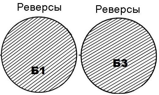 Посмотрите щлифовку на реверсе,там они направлены в противоположные стороны ,а положение буквы у Б1иБ3 одинаковое