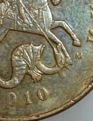 Для определения нужно ВСЕГДА выкладывать полноразмерные и максимально возможного качества фото аверса и реверса, а фрагменты уже для уяснения проблематичных моментов. У штемпелей есть свои "фишки" и не всегда они в районе монограммы.