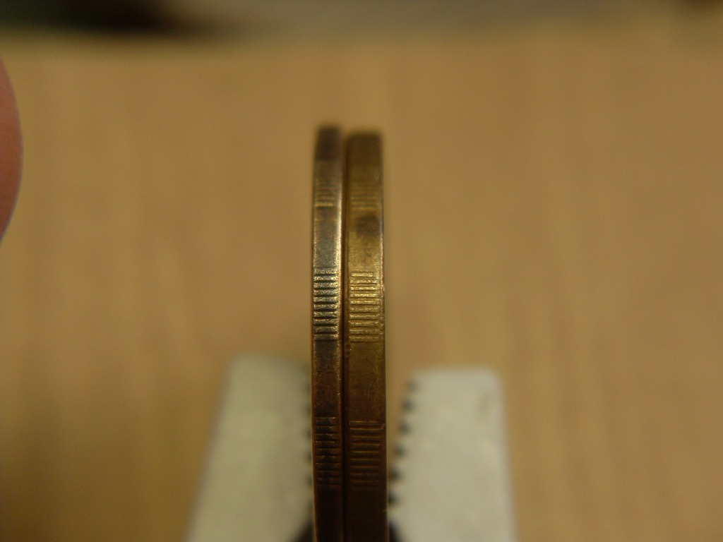 Попалась монетка 50 рублей 1993г. Раскол настоящий, а вот всё остальное вызывает сомнение. То ли пытались сделать супербракованную монету, то ли под жетон метро массу стачивали. Или всё же действительно крутой непрочекан на бракованной заготовке?