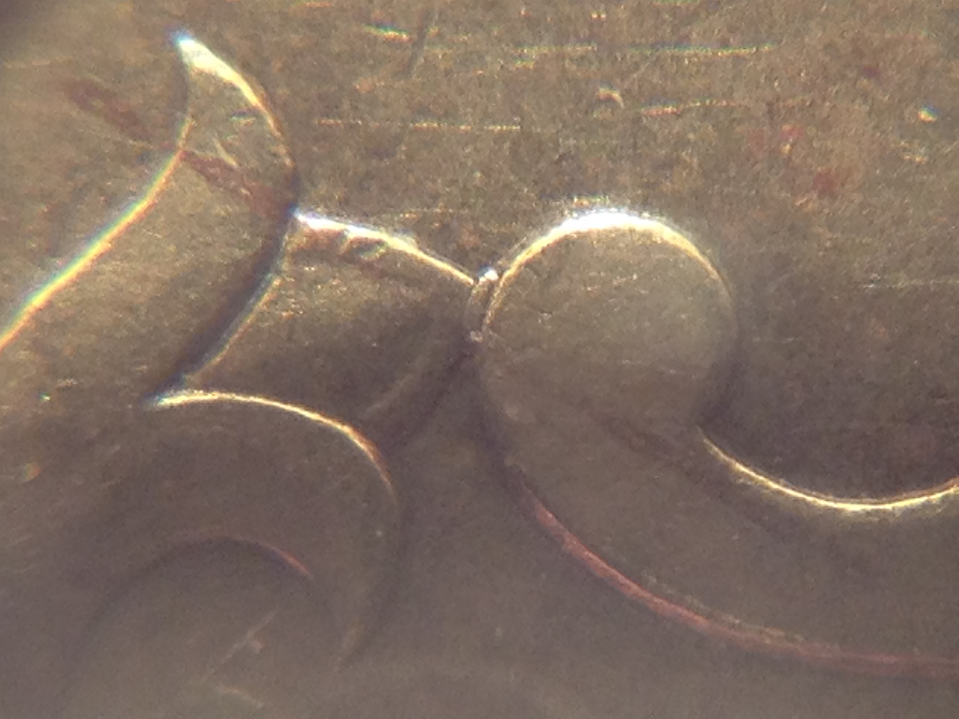 Вообще, на нормальной монете без выкрошек его лучше видно