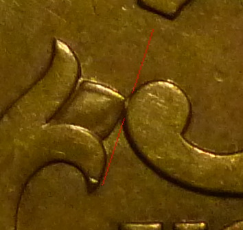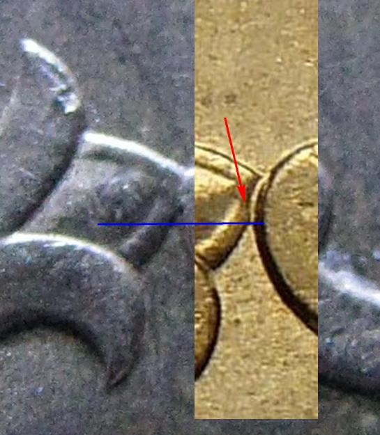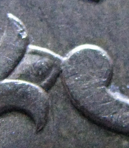 Думается, что уменьшение ширины окантовки бутона в районе просечки более устойчивый признак. На монете Aniks-а это хорошо просматривается. А вот на монете krono я этого уменьшения не вижу.