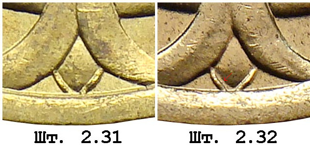 Вы правы, сверялся по двум признакам по бутону и расстоянием между пятеркой из моих монет только эта с правильным бутом сравнивал с шт.2,31 2003г.!