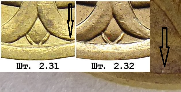 В каталоге описывается, только разница в изображениях и расстояние от букв, до канта. По знакам монетного двора ни слова. Посмотрел на картинки из каталога,везде вроде все одинаково.