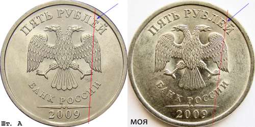 Здравствуйте.Есть монета 5 руб.2009г.сп,магнитная.Аверс вроде бы и А,но знак развёрнут по часовой стрелке(по отношению к А).Какие будут мнения?