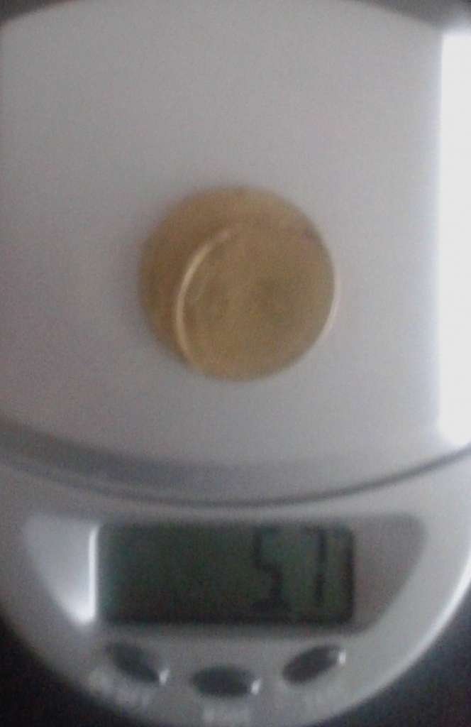 Я думаю, если бы кто-то хотел сделать брак из 2 монет был бы отпечаток второй монеты. Монета имеет вес 5.7 грамм