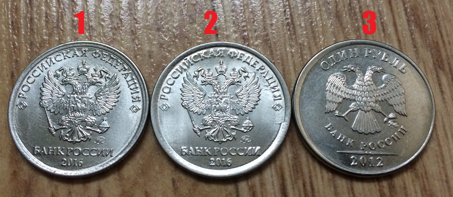 1)1 рубль 2016 ММД. Кант-лесенка (хорошо заметен на аверсе, на реверсе почти не заметен)