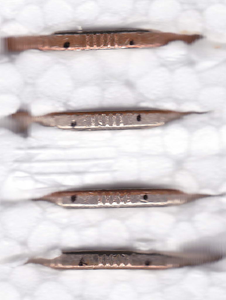 Монеты, у которых 7-9 пятирифовых участков имеют профиль типа I, а, соответственно, 3-5 имеют профиль типа II, имеются в каждом году. Специально для сканов взял пятаки из разного металла. Как классифицировать их?