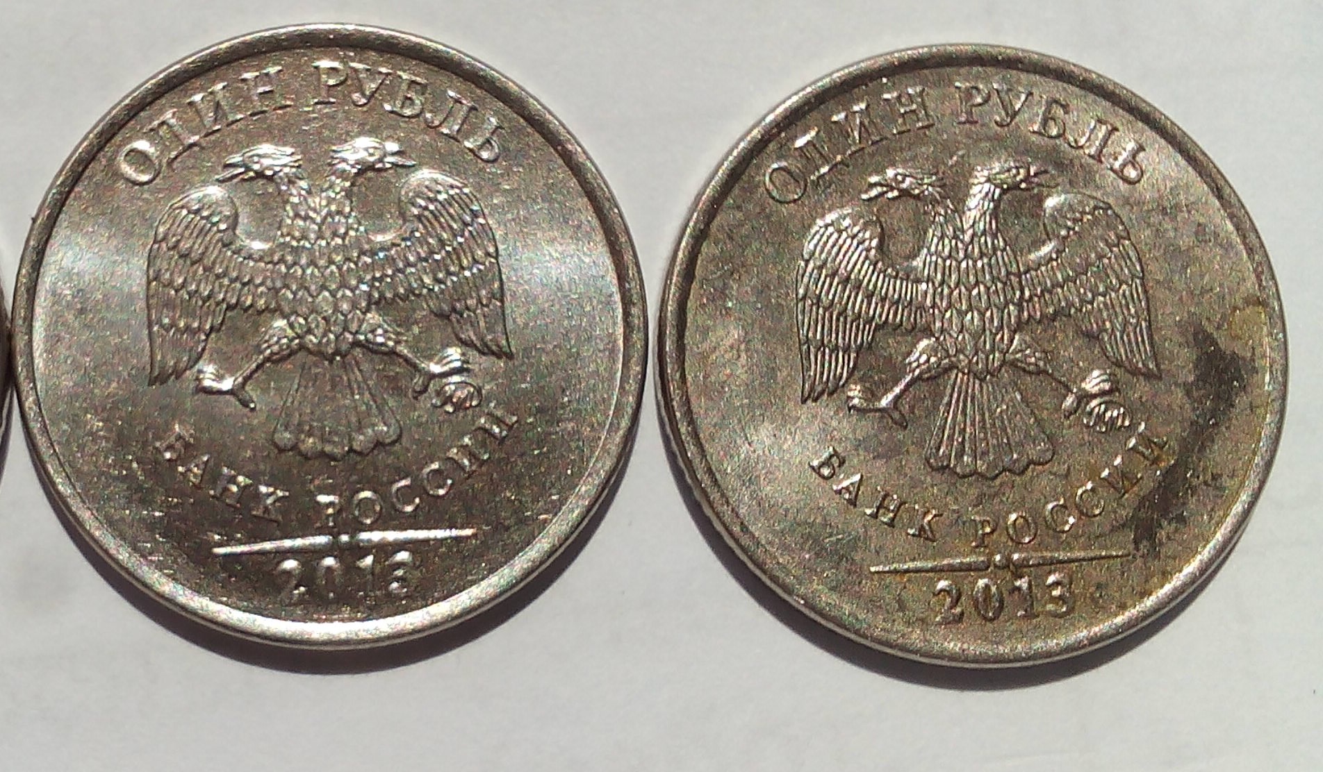 Знакомый притащил 1 рубль 2013 года ММД на котором кант съехал в сторону, покапался в своих монетах нашел такой же один в один.