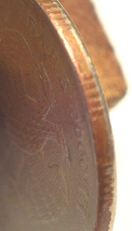 Вот такая же, только покрытие снято (ободрана) со стороны аверса.