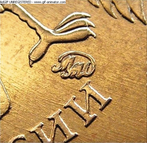 2. Изображение меняет размеры(заметьте размеры ) только в нижних окончаниях букв и верхней дуги левой части знака монетного двора.