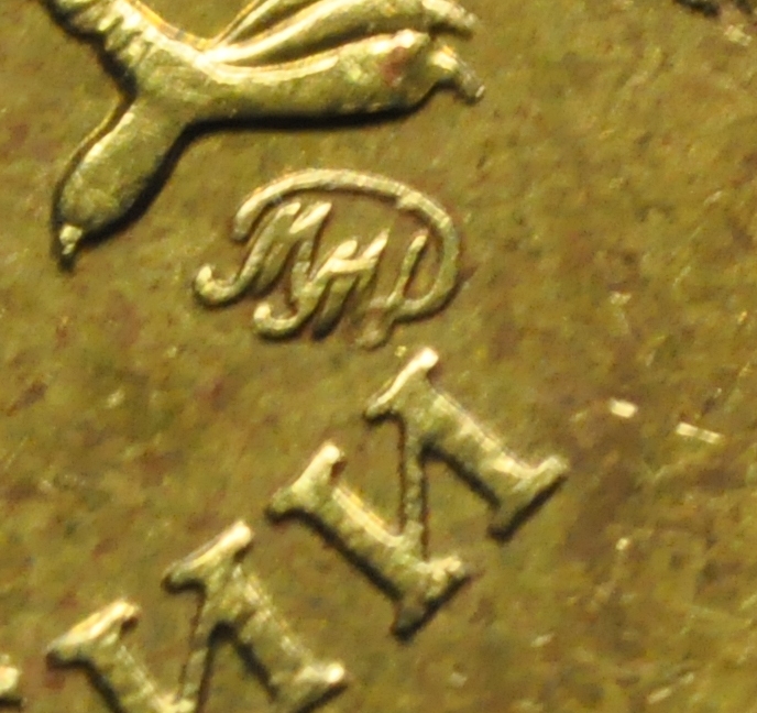 Износ штемпеля ("птички" на И), плюс повреждения монограммы (особенно хвостика, соединяющего М с Д) по жизни (либо опять же на уставшем штемпеле), создают впечатление приближенности монограммы к последней букве "И", хотя, при внимательном рассмотрении, знак МД оказывается равноудален от лапы и буквы. А это основной признак аверса А (в сочетании с тонким знаком). По реверсу - вне всяких сомнений 2.3 - определяется элементарно.