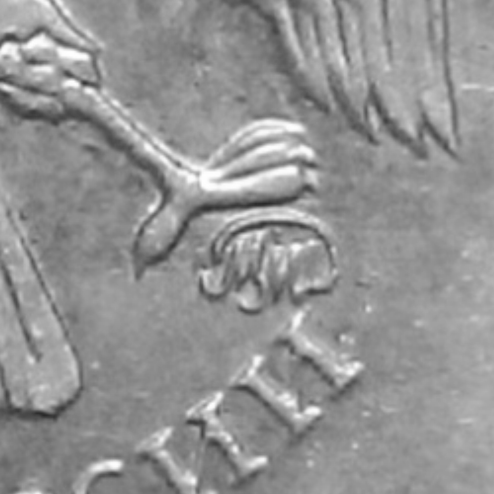 Ничего необычного нет, на мой взгляд. Знаки монетного двора (как все изображение в целом) на монетах бывают "жирными" и "тощими", тот, который слева (в Вашем случае) - "жирный"... Прям все, как у людей... С уважением.