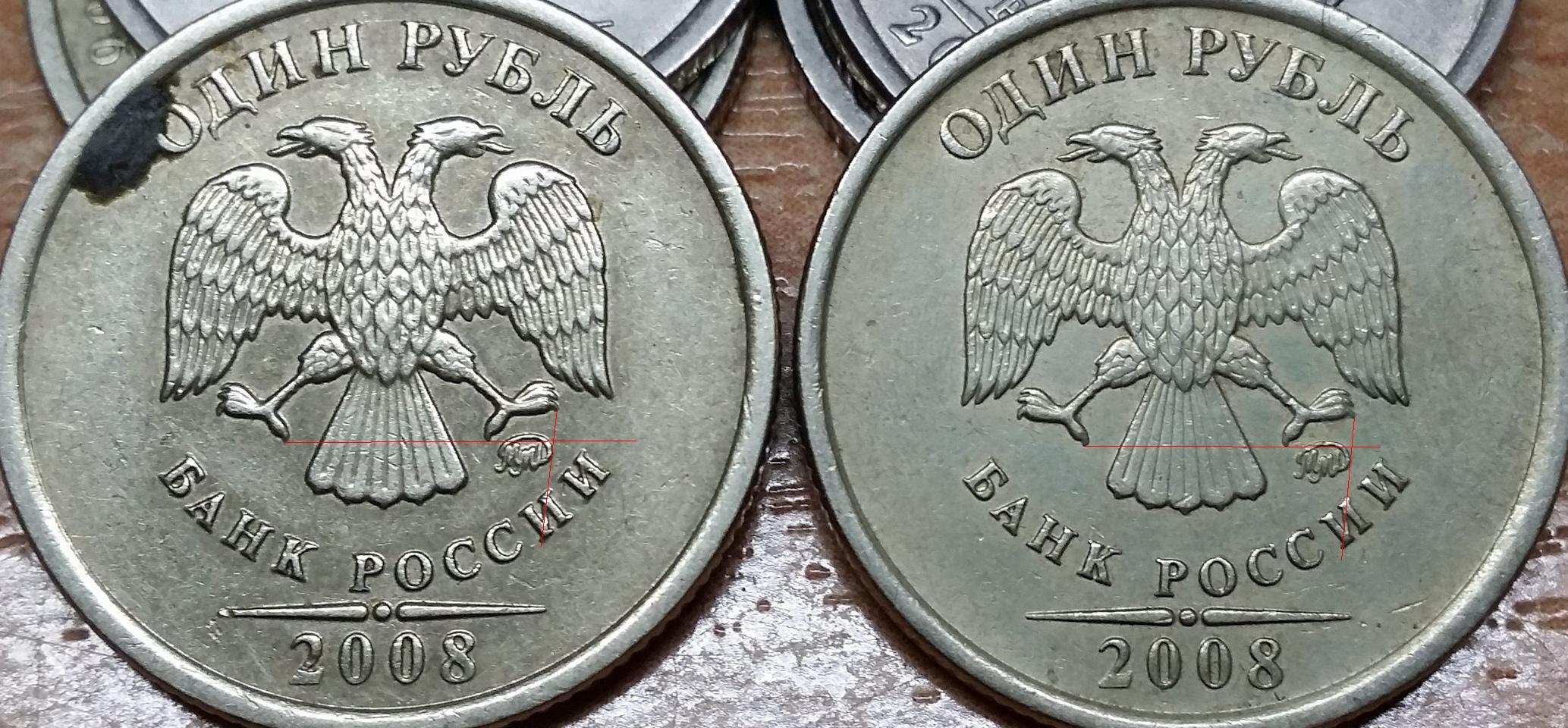Уважаемые колеги ! В каталогах 1 рубль 2008 ММД нет разновида .Я хочу выставить на обсуждение три варианта расположения знака монетного двора , два вида гурта и канта, плоским кантом и с уступом, и как минимум три варианта лепестка реверса с частыми прорезями и без прорезей совсем, существуют варианты удаления от канта . Возможно у кого то есть информация .