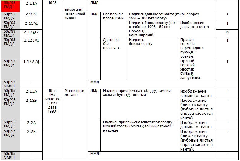 III - 9-10-11, на 50-рублевых монетах не обнаружен,