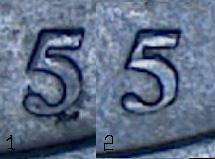 На сканах плохо видно детали, а фотографии более выразительные. Цифры "5" даты выглядят по разному. На первой пятерка делает "выдох", на второй "вздох", разная толщина верхней части дуги.