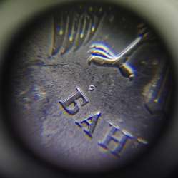 может будут ещё какие- нибудь мнения? можно даже пофантазировать. например, эта точка появилась над буквой Б в следствии выкрошки, когда шлифовали штемпель войлочным кругом (валенком), который засорился частицами металла от штемпеля, что привело к появлению выкрошки в форме круга. ну или ещё чего- нибудь придумать можно.