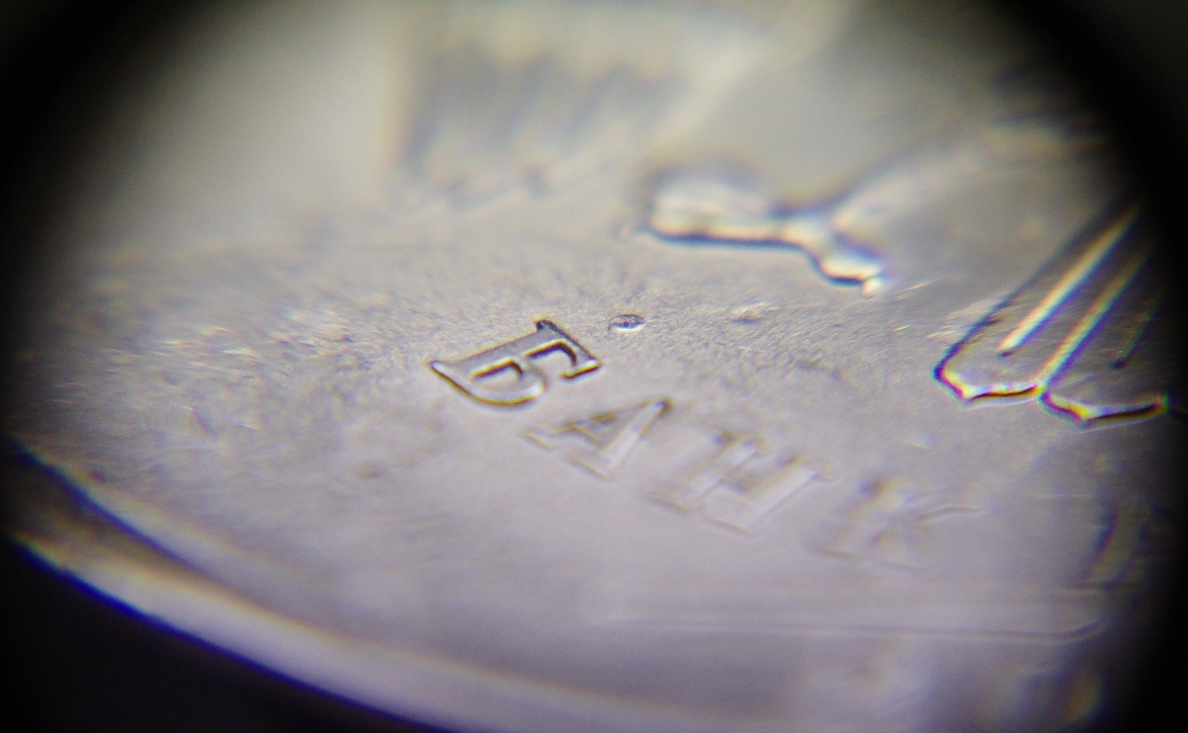 уважаемые друзья, позвольте представить к обсуждению "обычную" редкую Д-шку для сравнения, но главный вопрос по необычной редкой Д- шке. просматривая накопленный материал заметил на монете справа- пятна. решил что грязь. почистил необходимыми материалами. в итоге пятна оказались дефектом покрытия. при более детальном осмотре была замечена необычная точка над буквой Б в слове БАНК на аверсе монеты. точка имеет правильную геометрическую форму круга и расположена на вертикальной оси буквы Б. может у кого есть рациональное объяснение этому факту?