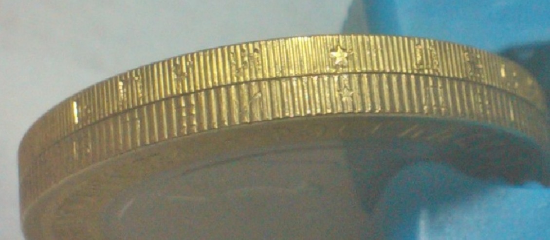 Возможно это гурт с 25-ти рублёвки(180 насечек).Такая монета известна.