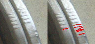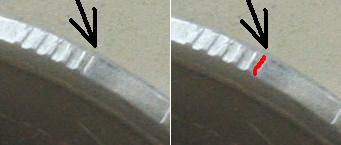 На аверсе в добавок след от соударения с поворотом, но сама монета без поворота аверса к реверсу (видно на предпоследнем фото, на последнем отметил красными линиями).