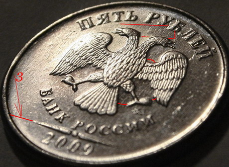 Вот 5 рублей магнитные. Заготовка вся исчерчена спиралями и полосами на реверсе и бороздами на аверсе.