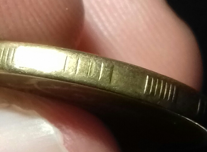 Смотрю червонцы по гуртам, нашёл такое: на одном коротком участке как дополнительная просечка, а на втором как будто рубец скраю. Подскажите, что это может быть?