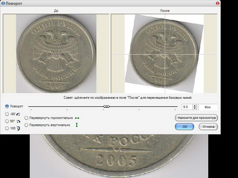 Здравствуйте господа ,кто откликнулся . Как незначительно и точно повернуть монету для измерения экранной линейкой на дисплее т.к. линейка плавно не поворачивается ,монет при сканировании много за один проход и ровно их не положешь . Особенно сложно выставить 5р.2012 5.31 ,в этом году на монетах много поворотов аверс-реверс.