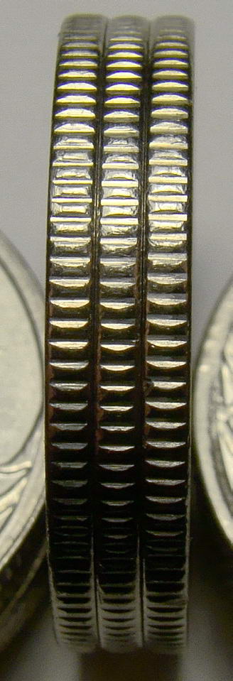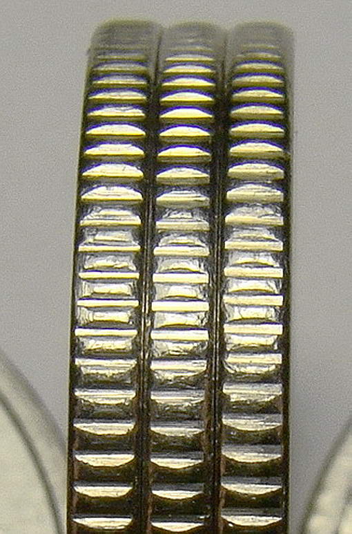 Привожу новые фото: монета с искомым гуртом находится между двумя 1.10СПМД шт.3.23 с разными гуртами. Специально подобрал монеты для сравнения с четкими гуртами.