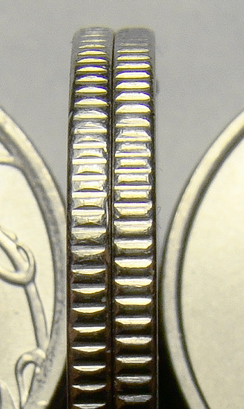 Искомый гурт на монете слева. Справа - монета этой же разновидности со II-ым гуртом.