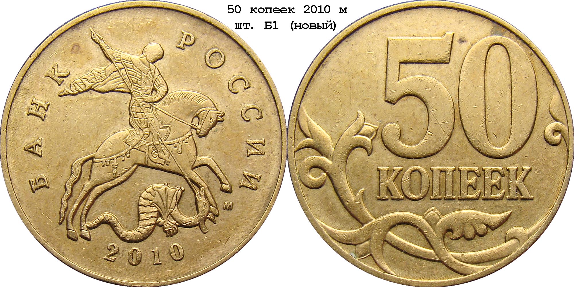24 декабря 2013 Валентин Воронцов aka Высший примат на одном из форумов показал 50 копеек 2010 м с неописанные ранее аверсом, отличающимся слегка иным положением буквы М. Новый вариант получил обозначение Б1 и уже добавлен в спецкаталог.