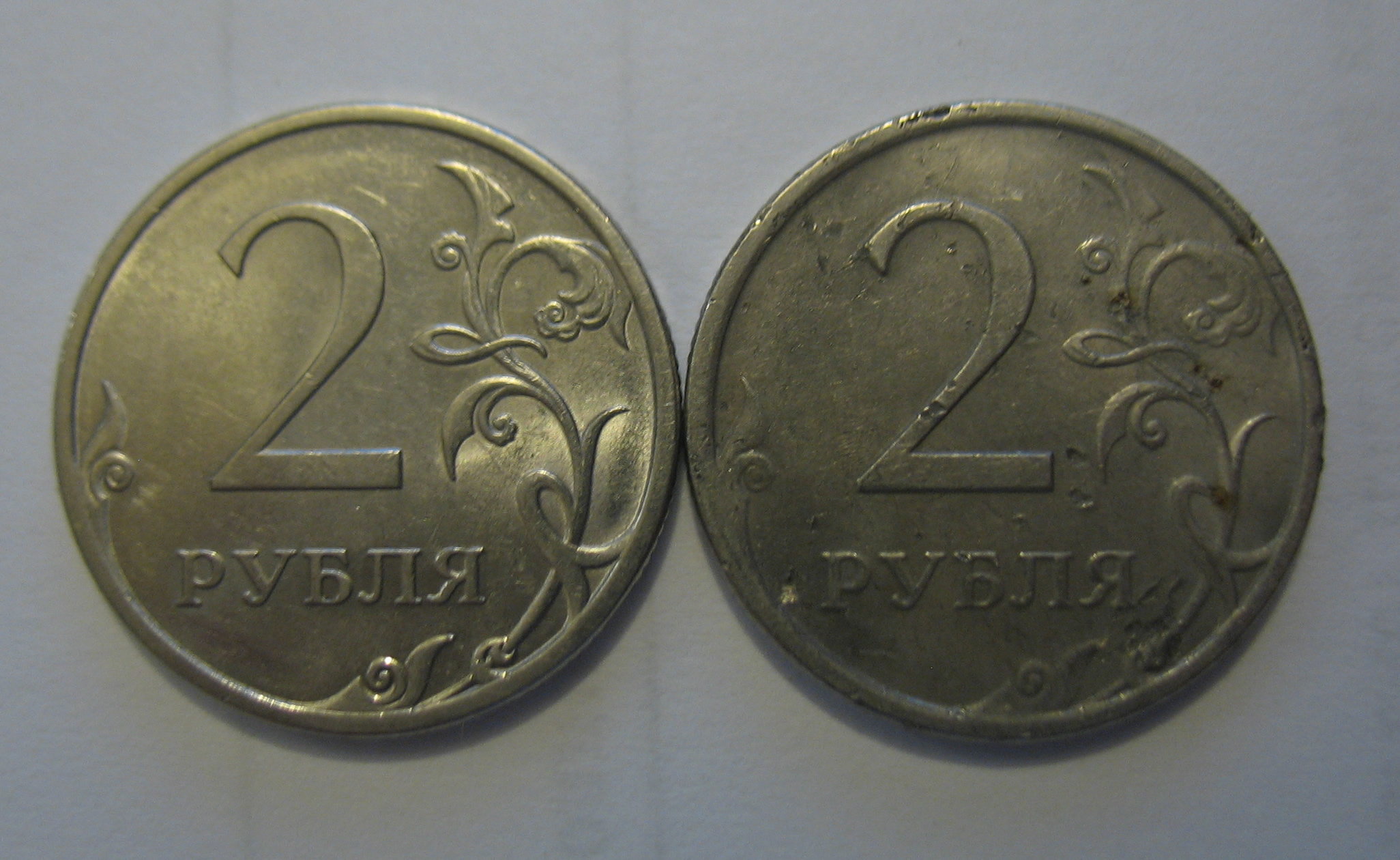 Как известно, в 2009 году для рублёвых номиналов произошел переход от немагнитных заготовок из цветных металлов на стальные заготовки с никелевым гальванопокрытием. В начале 2009 года оба монетных двора массово чеканили 1, 2 и 5 рублей на старых заготовках, а во второй половине не менее массово - на новых, стальных. Основная особенность гальванопокрытия заключается в том, что оно покрывает монету со всех сторон включая гурт.