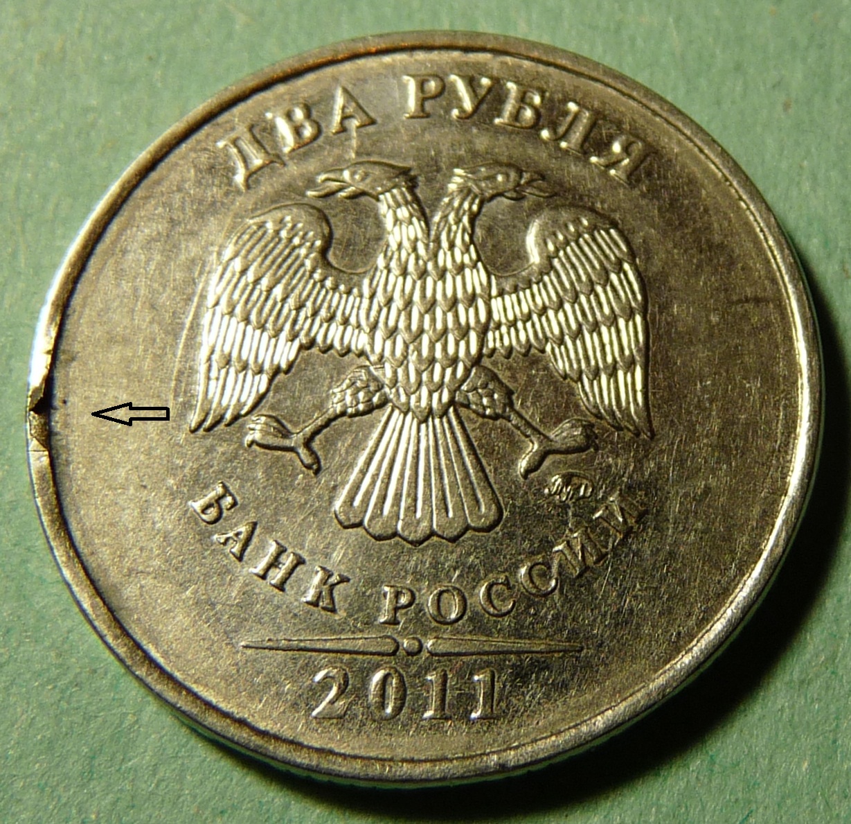 Вопрос по монете 2р 2011 ММД, магнитная. Предполагаю наличие плакировки на данной монете. Фото прилагаю.