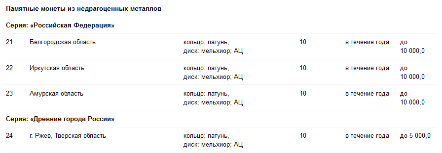 Запланированные монеты добавлены в список юбилейных монет для обращения.