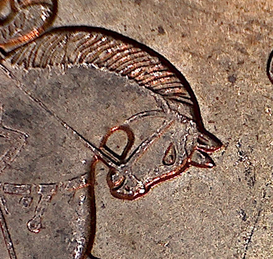 Вчера такую монету мне на изучение прислал Сергей ksk777 из Санкт-Петербурга. На выкрошку не похоже, думаю, что это действительно гравировка. Кроме дополнительной детали в узде, других отличий у монеты не выявлено.