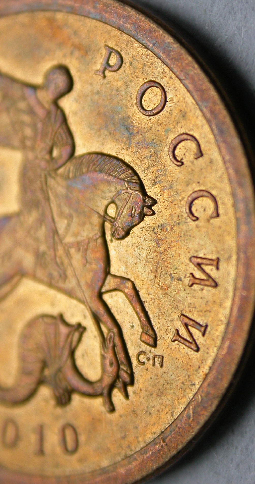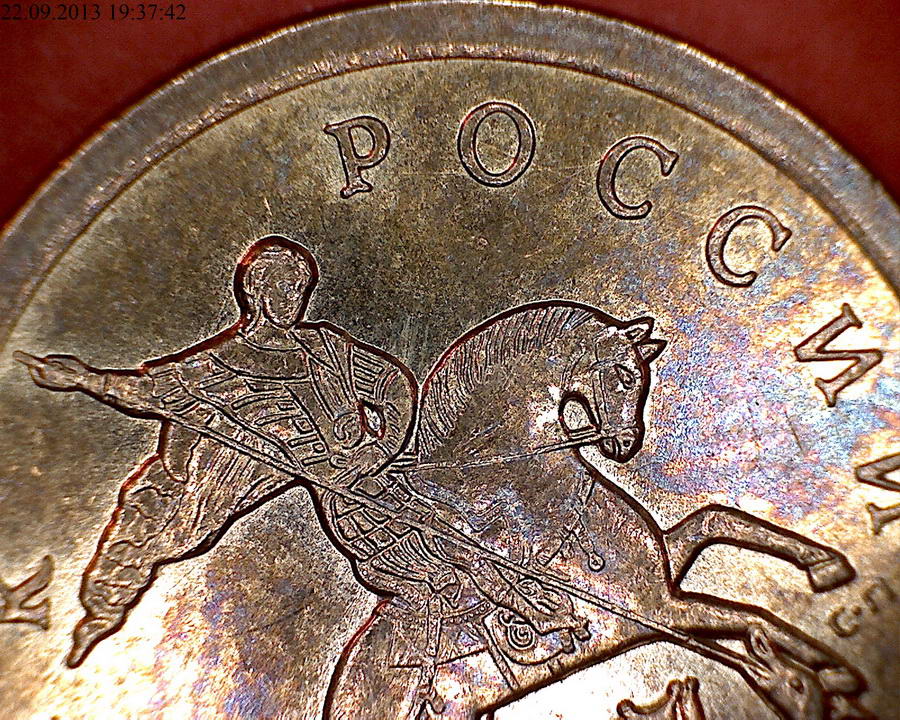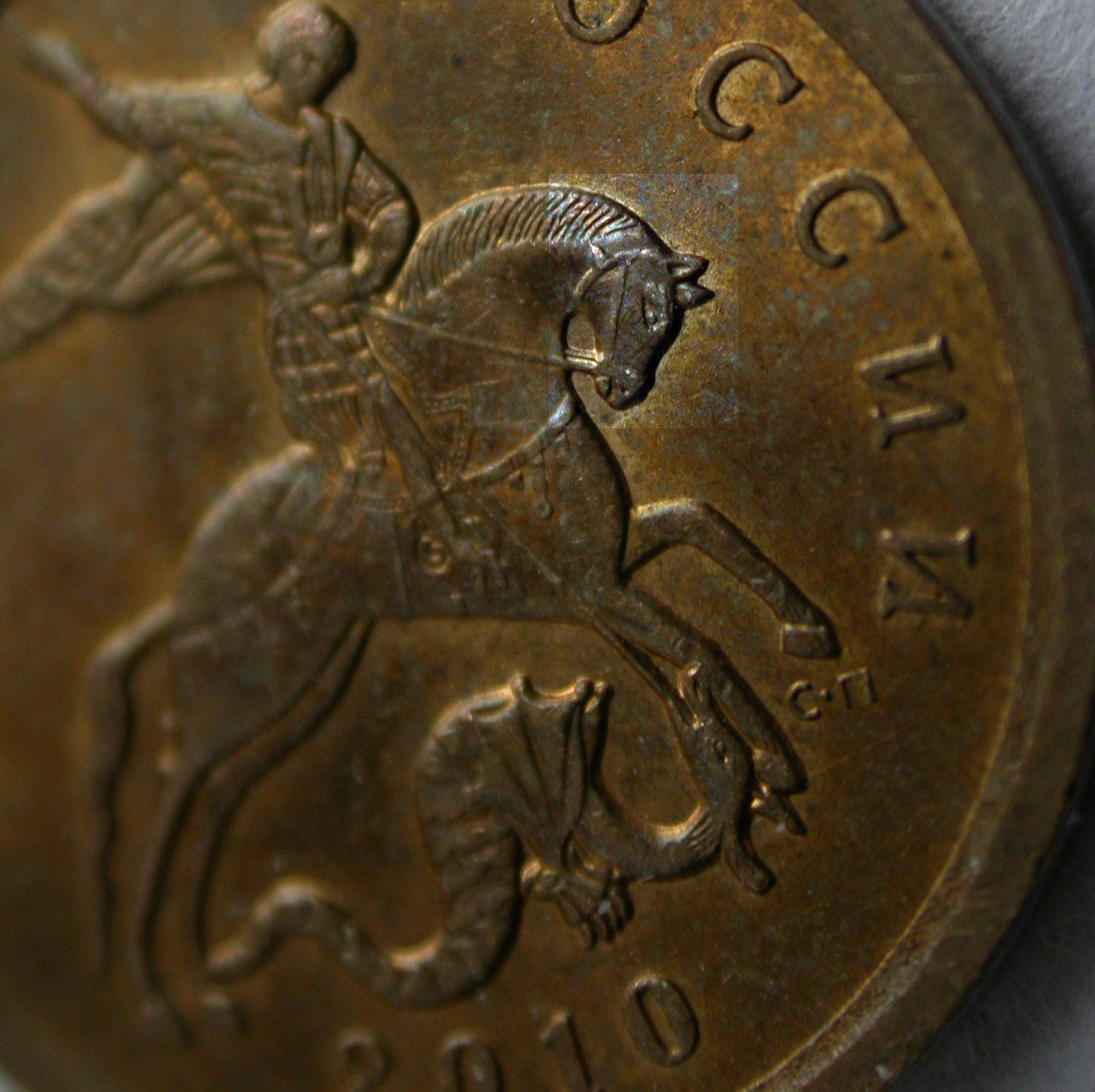 Когда пытался найти отличия между обсуждаемым вариантом и обычным, впервые увидел, что на аверсе 2010 с-п гравирован даже рог (или что это?) у змея - там есть две насечки. Настолько тщательно проработан аверс. До этого насечки на роге не замечал на других аверсах (но специально, конечно, не искал).