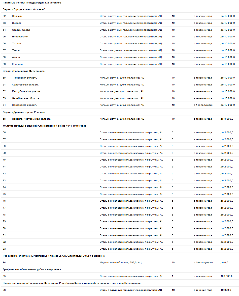 В прицепе скрин части плана по монетам из недрагоценных металлов.